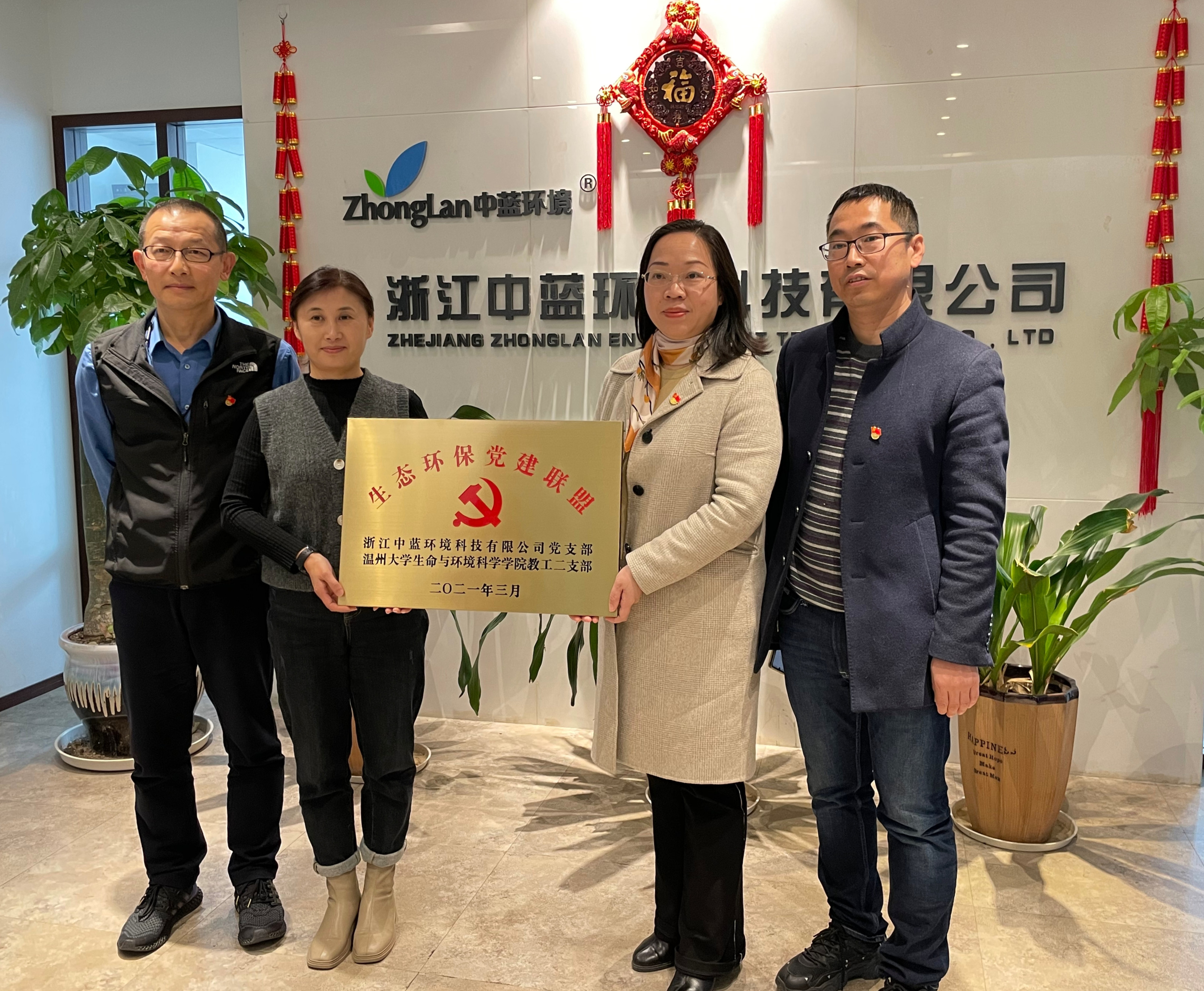 2022年3月3日,溫州大學(xué)生命與環(huán)境科學(xué)學(xué)院教工二支部和浙江中藍(lán)環(huán)境科技有限公司黨支部舉行了“生態(tài)環(huán)保·黨建聯(lián)盟”掛牌儀式。溫州大學(xué)生命與環(huán)境科學(xué)學(xué)院黨委書記姜海燕、學(xué)院教工二支部書記王奇同浙江中藍(lán)環(huán)境科技有限公司黨支部書記胡長敏就黨建共建共享、黨建引領(lǐng)交流合作等相關(guān)事宜進(jìn)行了深入探討。
